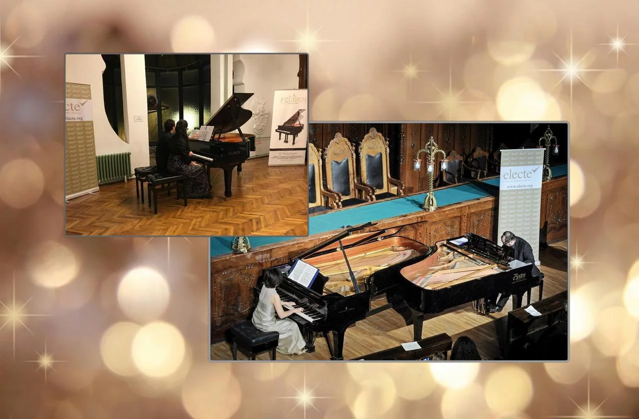 Bračni par Miljana i Marko Đorđević svojim muzičkim izvođenjem proveli su nas kroz periode muzičkog klasicizma i romantizma. Sve kompozicije predstavljene su četvororučno u izuzetno skladnom i spretnom nastupu, a podela uloga među članovima dueta u svakom delu bila je jednaka.