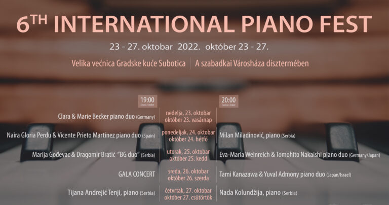 6th INTERNATIONAL PIANO FEST IN SUBOTICA Subotica is to host the 6th consecutive International Piano Fest, which is a prominent classical music event in the city. Between 22nd and 27th October 2022, active and passive participants are welcome to attend…
