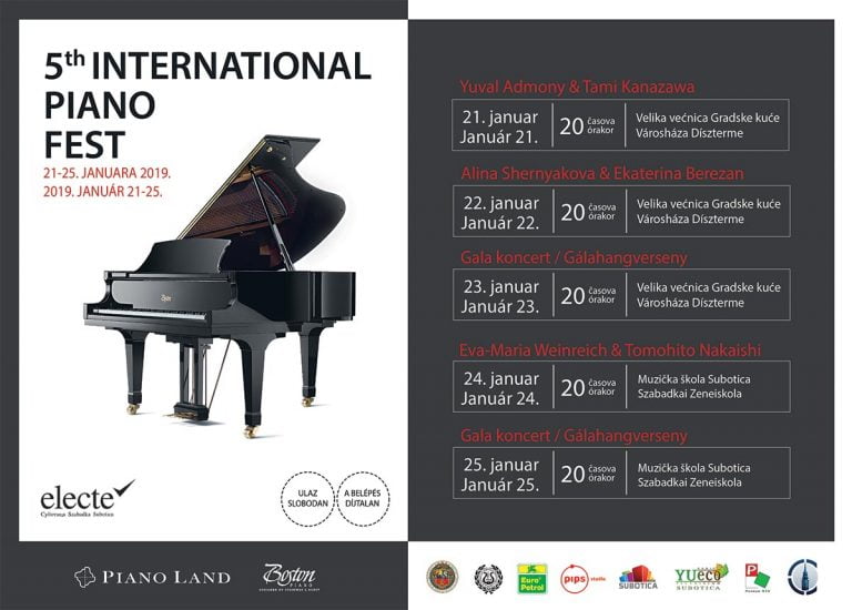 5th International Piano Fest   Drugi deo Petog međunarodnog festivala klavirske muzike – 5th International Piano Fest, biće održan u Subotici od 21. do 25. januara 2019. godine. Na 5th International Piano Fest -u biće održano pet koncerata klavirske muzike u Gradskoj…